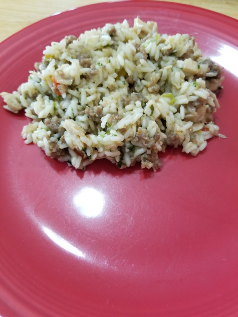 This one pot meal is packed with bold flavor and easy to make. It’s a different take on the normal Cajun Jambalaya. Made with chicken and ground sausage, it’s one of our favorite family meals.
