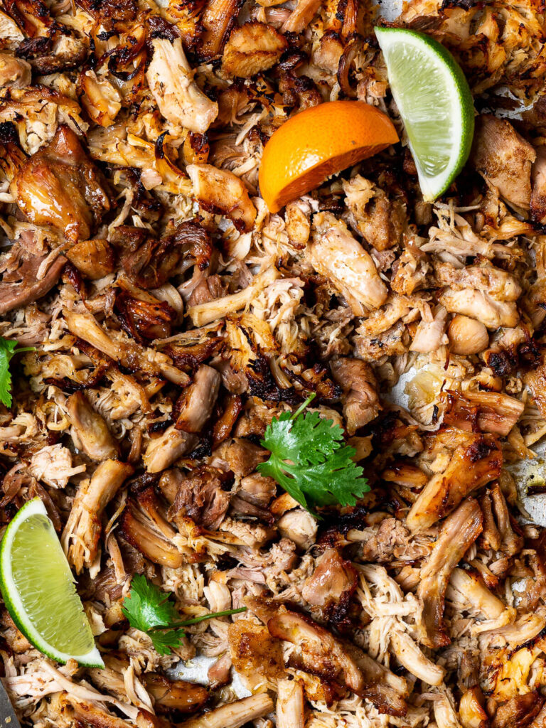 These Crispy Chicken Carnitas are super easy to prep and can be made in the instant pot, crockpot or stovetop. They are perfect for burrito bowls, tacos, quesadillas, or whatever your heart desires.