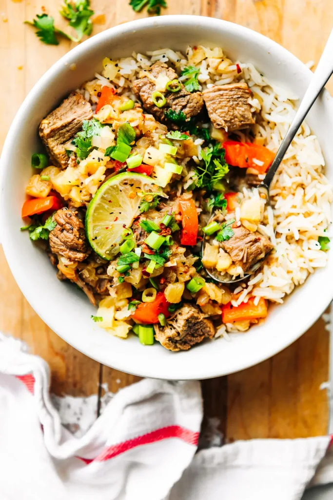 Crockpot Hawaiian Chicken is an easy recipe that can be served many different ways. You can serve it in wraps, tacos, salads, or bowl style. This chicken recipe can also be made in the instant pot.